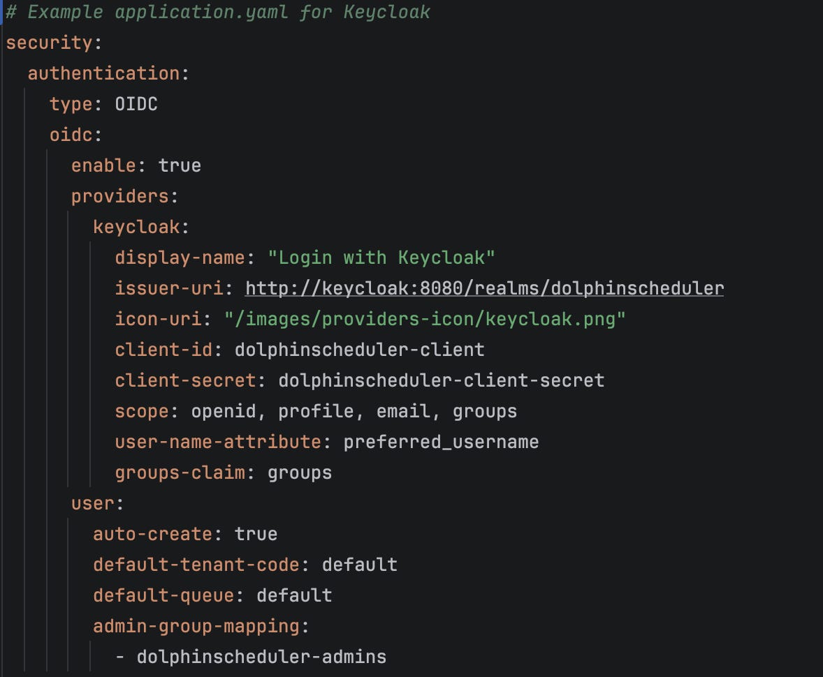 Centralized Identity Management: In an enterprise setting, administrators can manage all user access from a central Identity Provider (IdP) like Keycloak or Okta. When an employee joins or leaves the company, their access to DolphinScheduler can be granted or revoked from a single location, dramatically improving security and simplifying user lifecycle management.